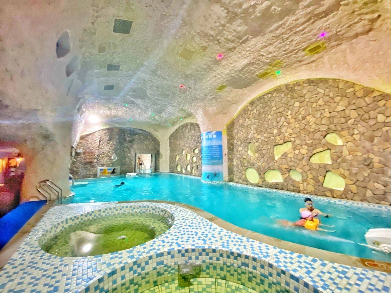【清远英德X云海江湾温泉度假酒店】全新装修大泡池房~北江河畔叹私汤+特色28个碱温泉无限泡,无边际网红大泳池畅玩!踏沙堆城堡再送北江河鲜,238元抢酒店全新碱泉泡池双床房+自助早餐+私家泡池1池水+无