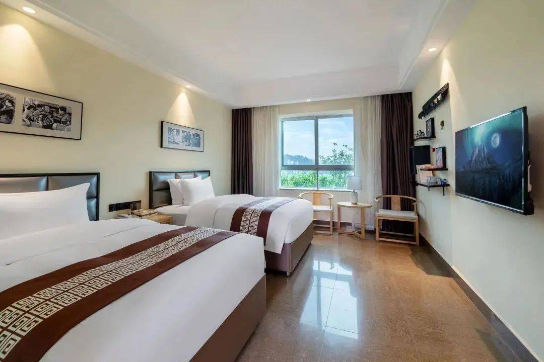 客房由客家名师设计,以客家文化为主,复古为辅的设计风格,文化品位较高,豪华宽敞、高雅合适。
