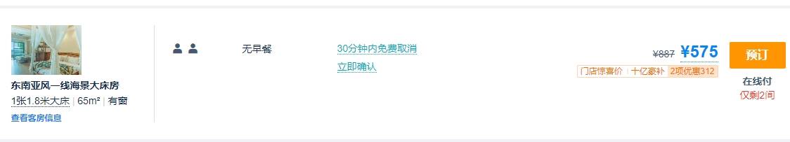 【住】一线海景房1间1晚(风格楼层各异,随机安排)