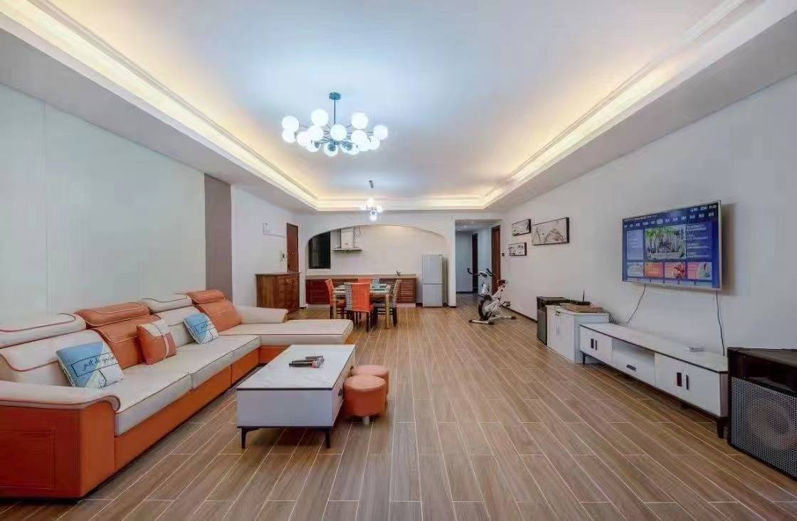 客厅中电视、沙发、茶几、餐桌一应俱全