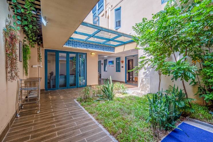 精致的洋房蔚蓝的天际下,充满惬意氛围