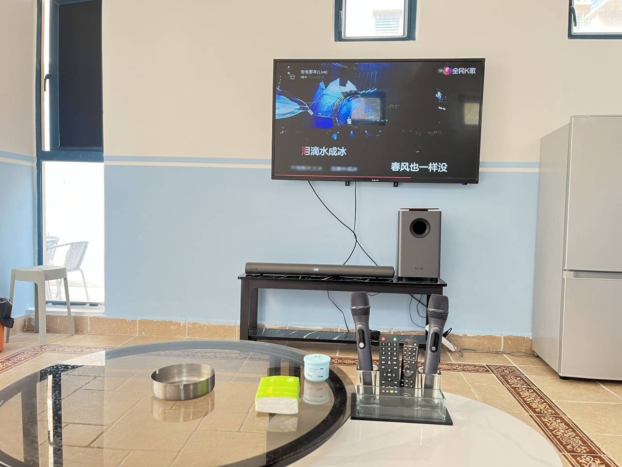 3、厨房有冰箱,电水壶、电磁炉、砧板菜刀俱全,网络电视,免费wifi,庭院烧烤炉