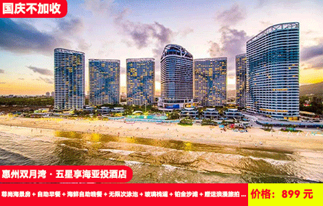 【惠州双月湾·五星享海亚投酒店】国庆不加收!赠送价值368元豪华海鲜自助晚餐!网红无边际泳池畅玩!楼下就是沙滩~含浪漫旅拍!899元抢酒店尊尚海景房+自助早餐+海鲜自助晚餐+无限次泳池+玻璃栈道+铂金