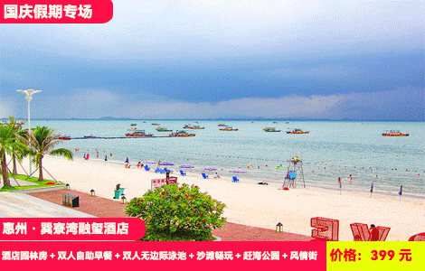 【惠州巽寮湾·海世界酒店】国庆专场!一步之遥到沙滩!¥388元抢海世界酒店海景房(6楼以上)+双人自助早餐+观海落地窗+畅玩铂金沙滩+酒店花园!打卡天后宫、磨子石、玫瑰礼堂!