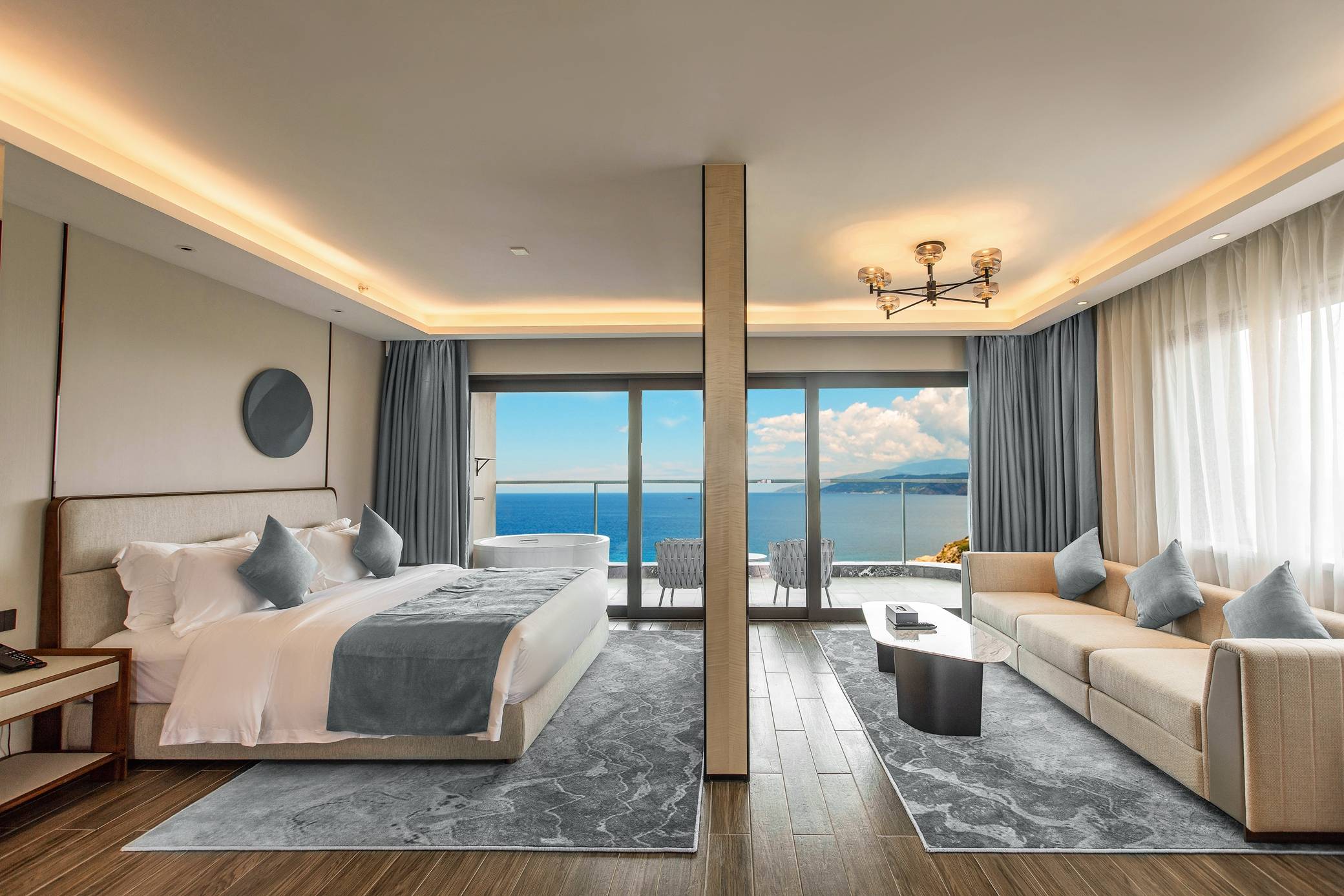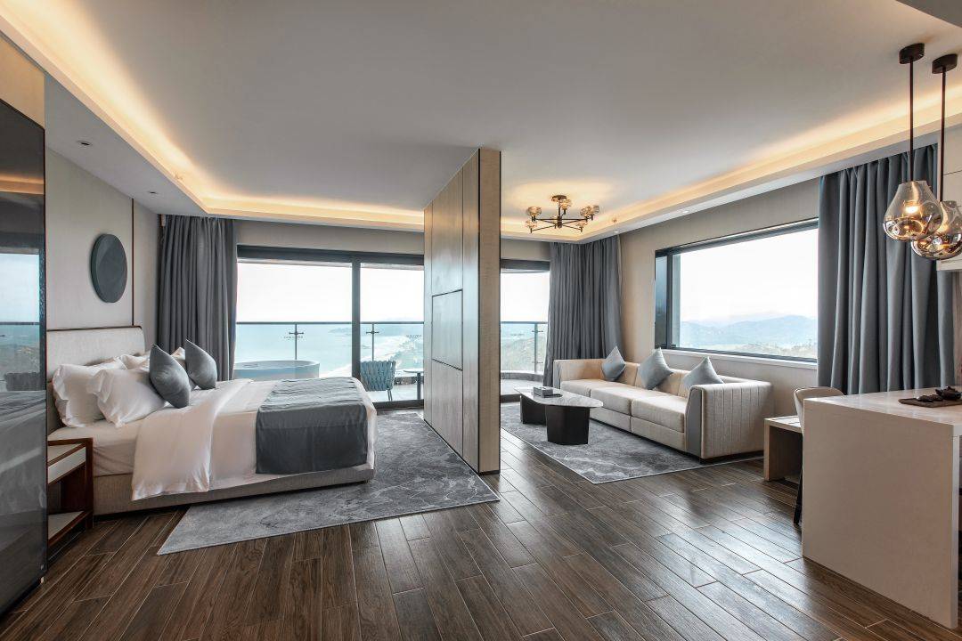 酒店整体以质奢优雅、简约舒适为主基调,更深研人性化细节与臻至服务。在这里,可以体验到舒适与豪华,尽享华丽雅致的休闲空间以及极具格调的精美客房,开启一场360°全方位瞰海的归心之旅,享用山海间诗意的慢生活。