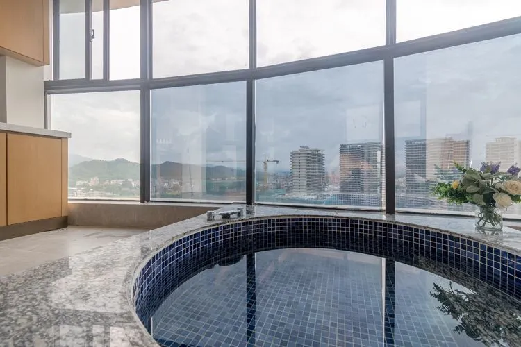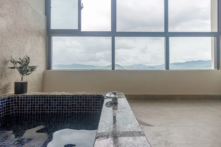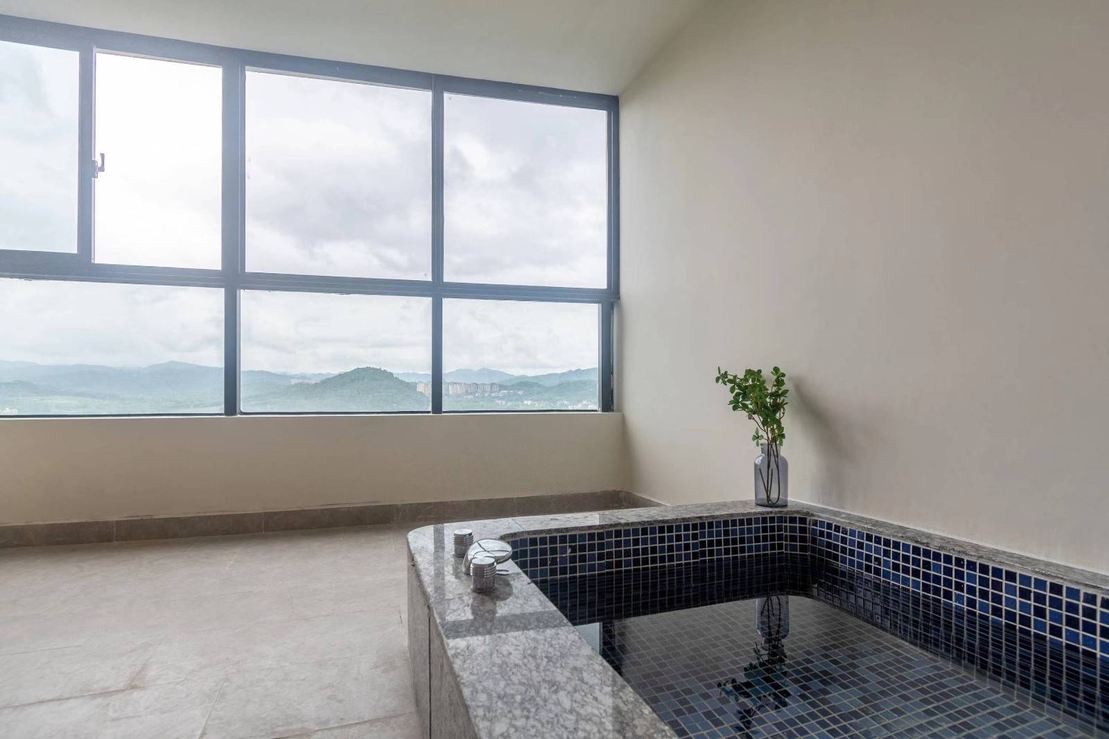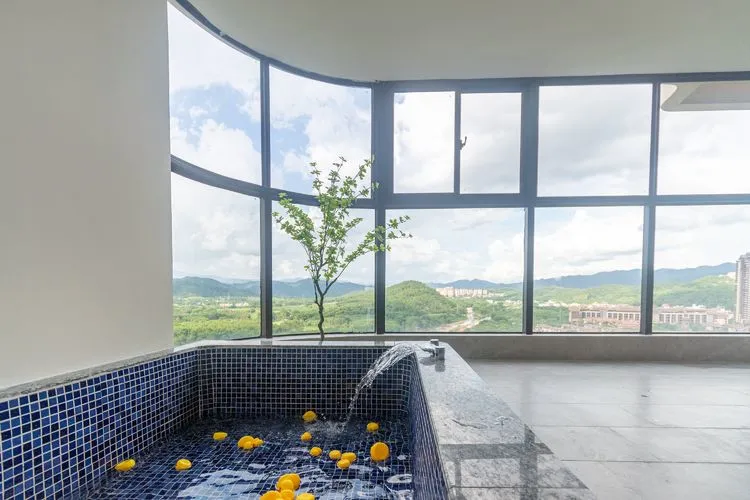 在阳台温泉泡池奢享无限池水,超大落地窗阳台