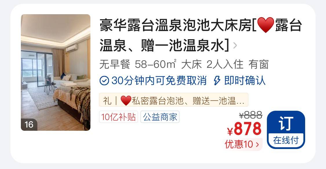 2、入住人数:建议2-3人,两房1厅4-5人,套餐赠送无限次池私家温泉水,温泉水提供时间早上10点-晚上11点,详情以物业为准,请按需浸泡,请勿浪费