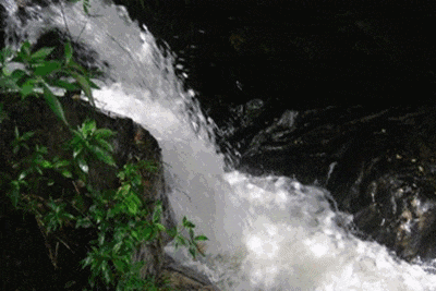 第三级瀑布的水帘洞中有一尊黑白相间的石头