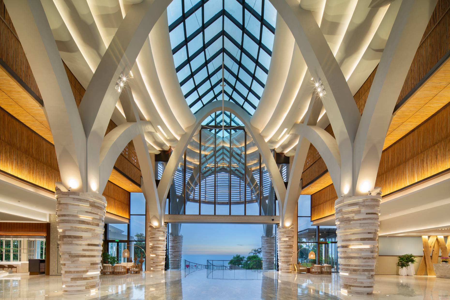建筑群沿1.8公里海岸线呈W型排布,互不遮挡,共有3300多间不同主题风格的客房、套房,户户直面太平洋,拥有极佳海景