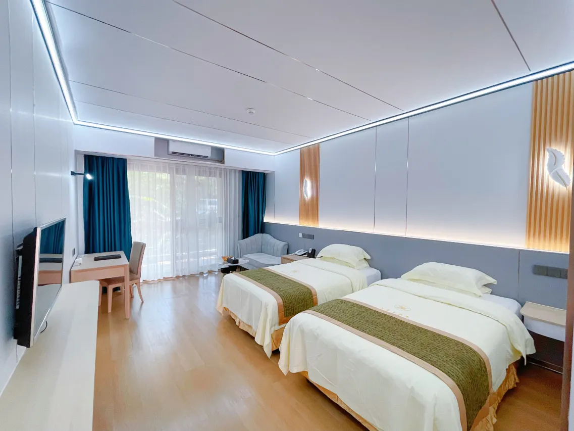 ▲养生双床房:双床(1.2米*2米)面积40㎡|(室内带浴缸)