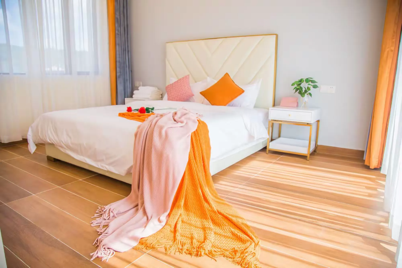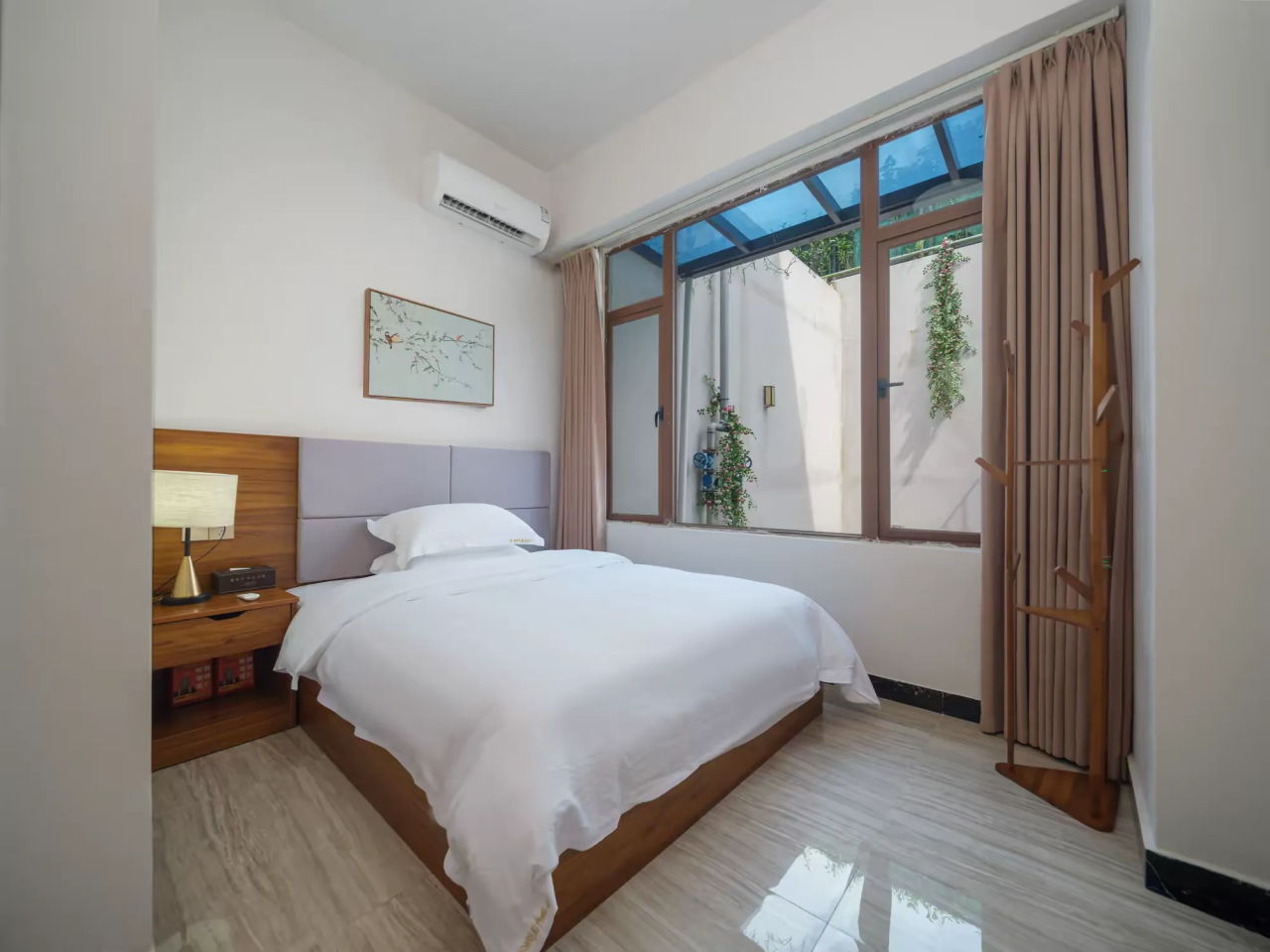 床榻柔软舒适,灯光温馨让你褪却喧嚣与繁华,回归宁静本真