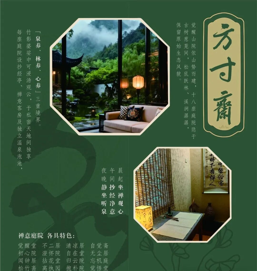 每座庭院设抄经亭、禅意客房及独立温泉泡池