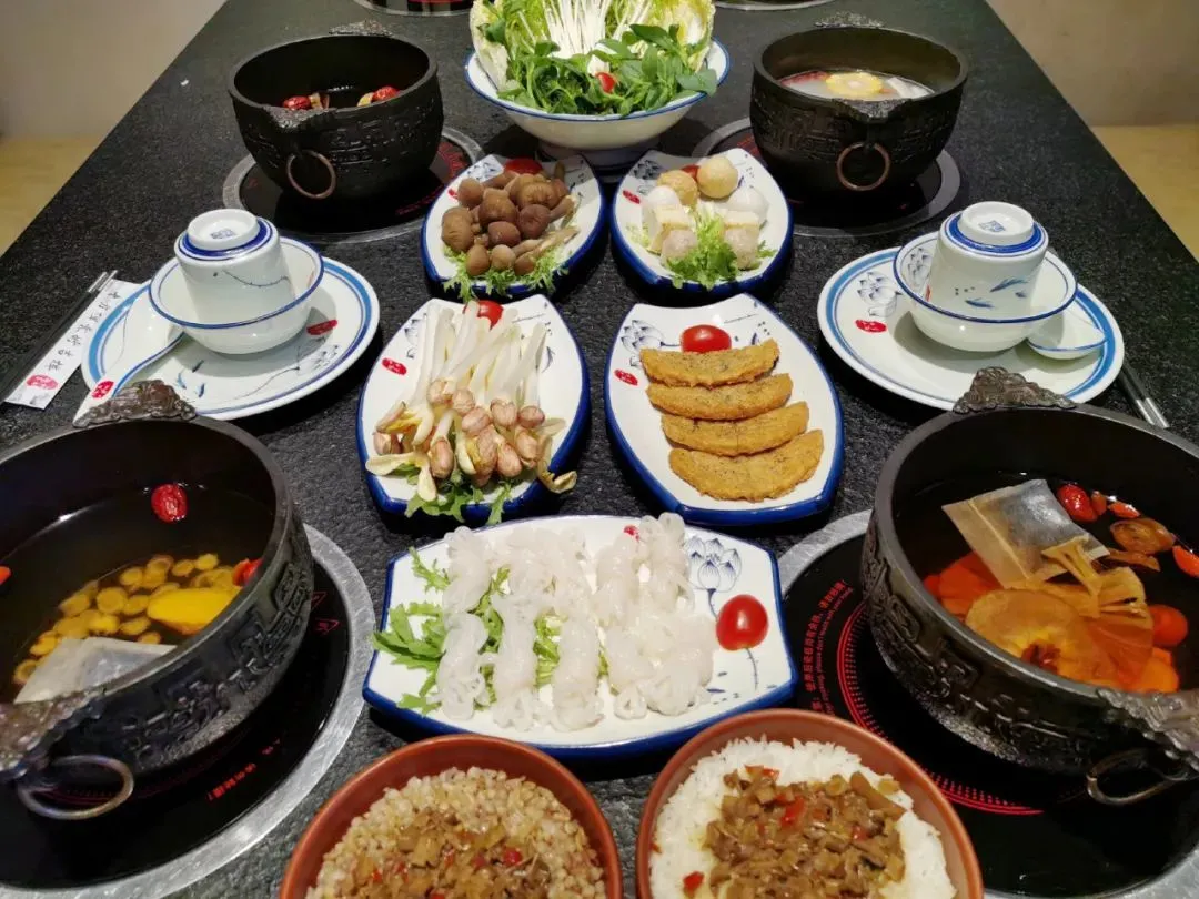 4.该房型不可加床,该套餐可叠加使用,早餐供应时间:早上7点30-9点,赠送的药膳火锅晚餐:药膳火锅养身锅药膳汤底,肉类:鸡肉或排骨,手打肉丸,素菜:白萝卜,玉米,铁棍山药,炸腐竹,茨菇,粉葛,红萝卜,菜心,香麦菜,麦菜,新鲜长条香茹,莲藕,豆腐,荞麦面,(青菜根据季节调整)