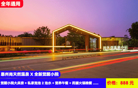 【惠州尚天然温泉X全新觉醒小院】赠送药膳火锅晚餐!一户一私汤独栋小别院!60+高山天然中药温泉无限任泡!非遗文化表演天天上演!888元抢觉醒小院大床房+私家泡池2池水+营养午餐+药膳火锅晚餐+无限次高