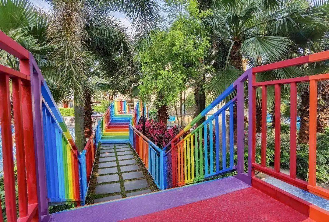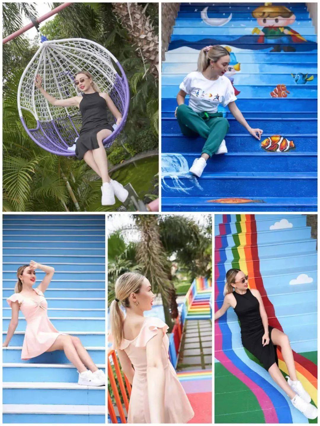 白天打卡网红秋千、彩虹楼梯等美拍点