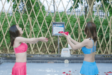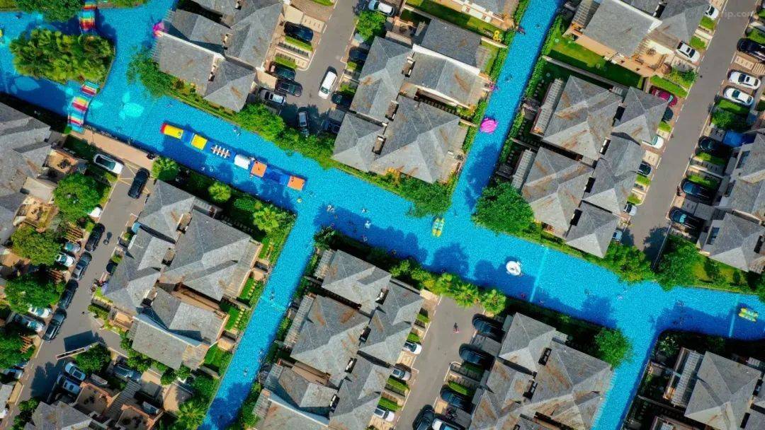 白墙黛瓦,湛蓝的泳道在阳光下分分钟秒出大片