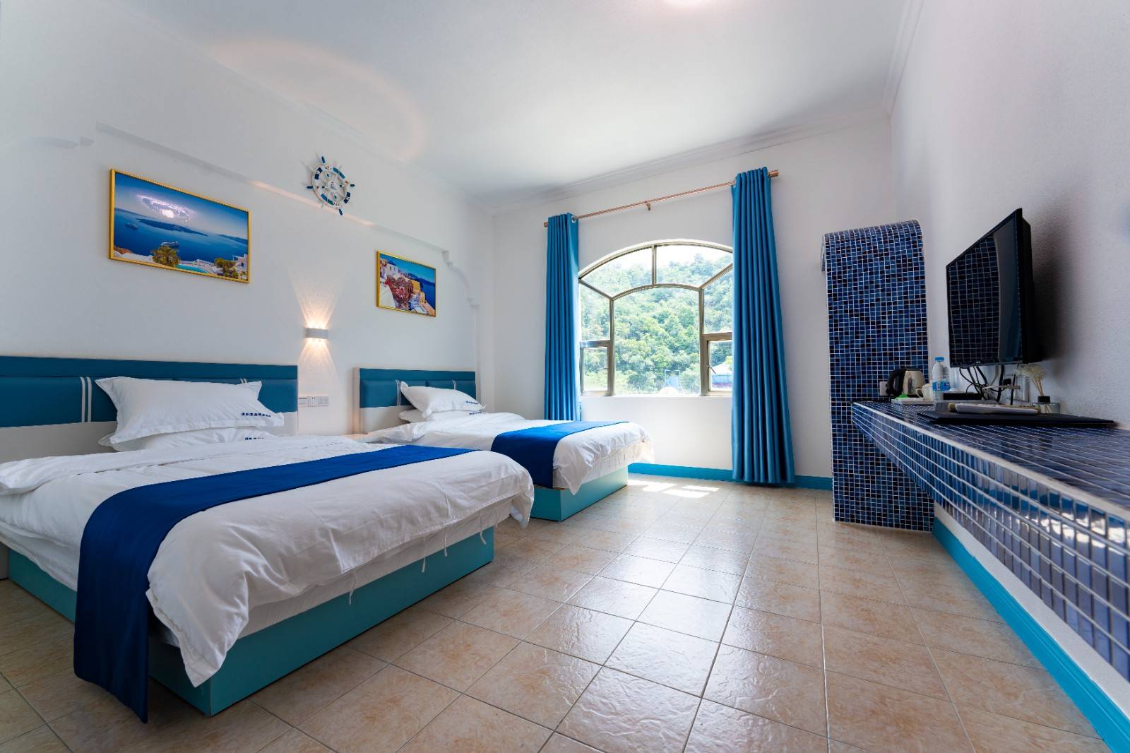 优雅的蓝色调与清新的装潢