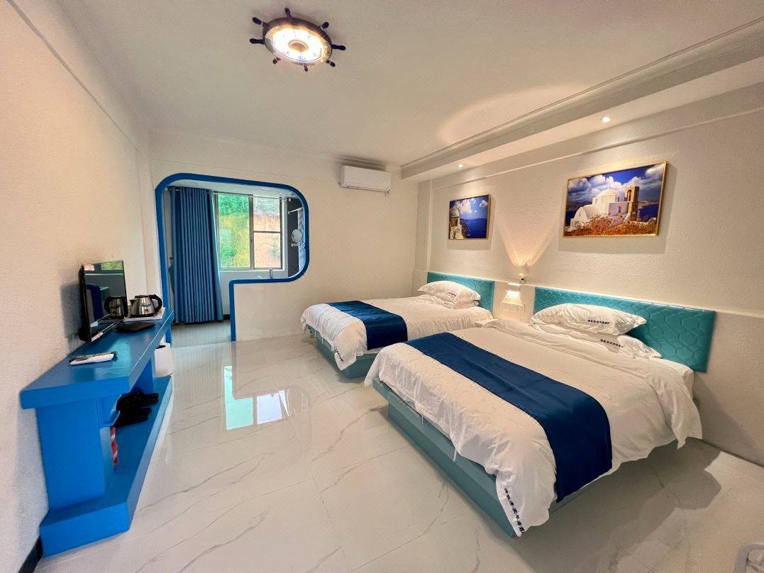 3、酒店双床房1.35X2,升级私家泡池房大床1.8米,双床1.35床x2张,豪华子母床房1.8米床+1.35米床2张,升级私家泡池房含一池水,酒店入住时间为当天下午14:00之后入住到次日中午12:00前退房