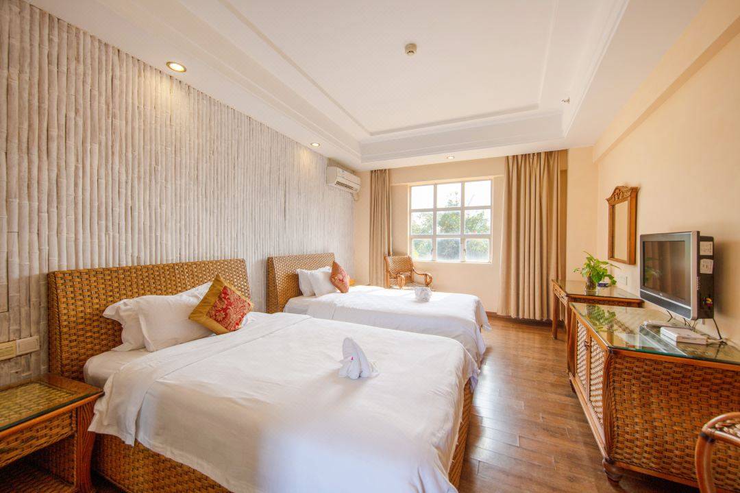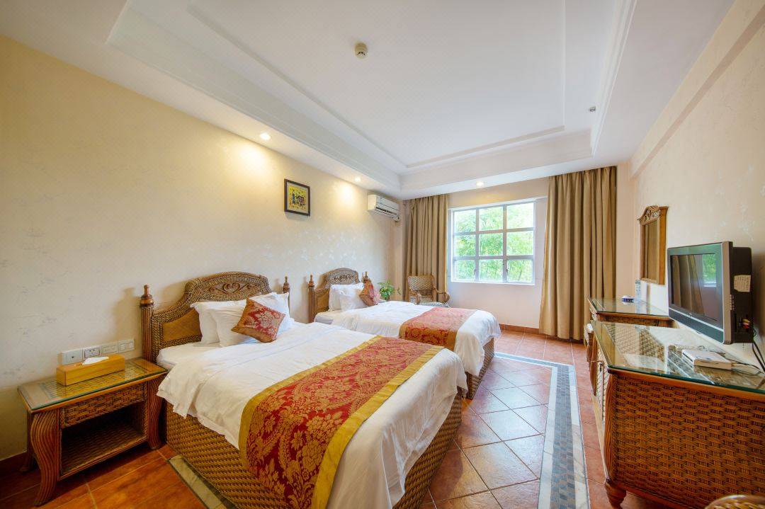 酒店的客房装饰以印度藤为特色