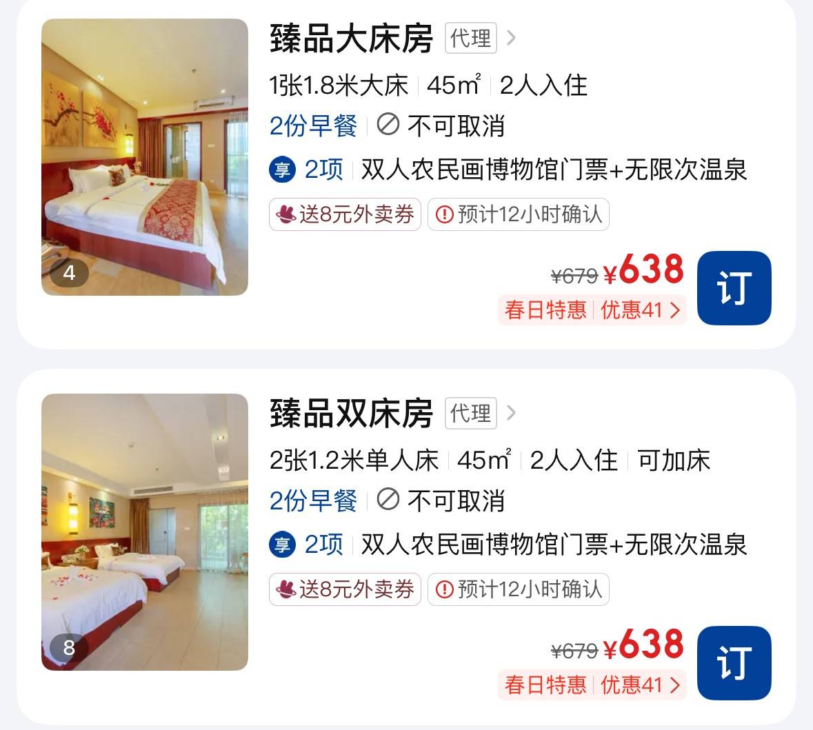 ①升级景区新装修圣途莱臻品酒店豪华大/双床房需加收100元