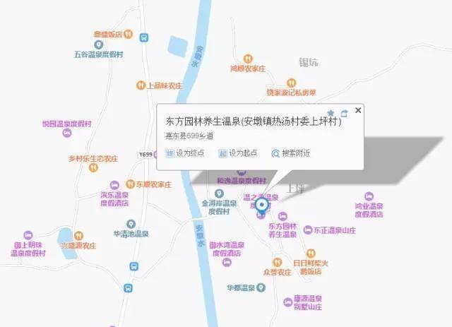 地址:惠东县安墩镇热汤村委上坪村东方园林养生温泉
