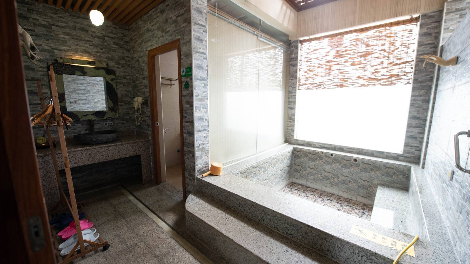 4、酒店房间阳台或室内带有一个私家温泉泡池,泡池不限制温泉水使用