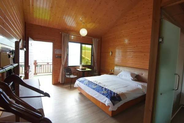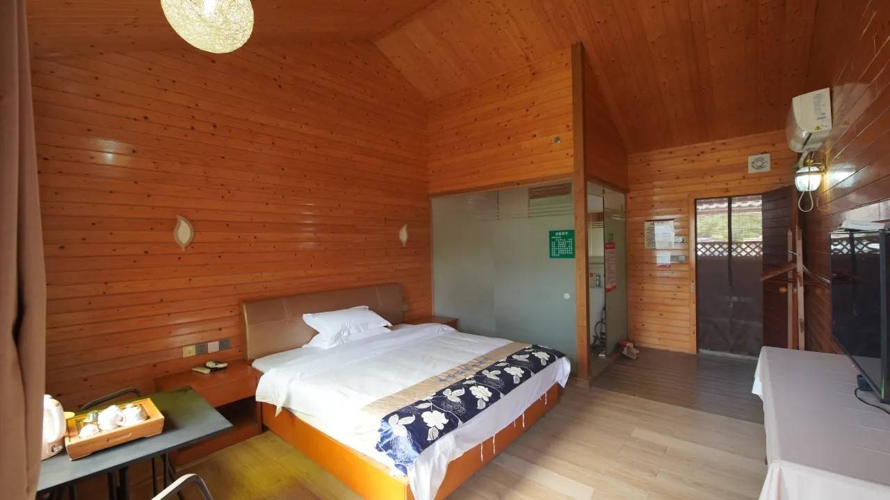 2、房型介绍:抢购房型为木屋泡池大床房,1.8米大床,可升级1.5米豪华泡池双床房(仅供参考),可选升级酒店1房1厅房型,1.8米大床/2张1.5米床+1 张1.2 米床(共2床-3床随机)