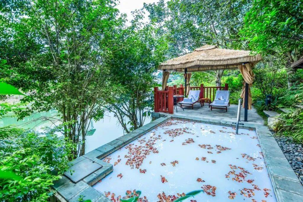 在闲暇疲惫之时,浸泡于别院汤泉中