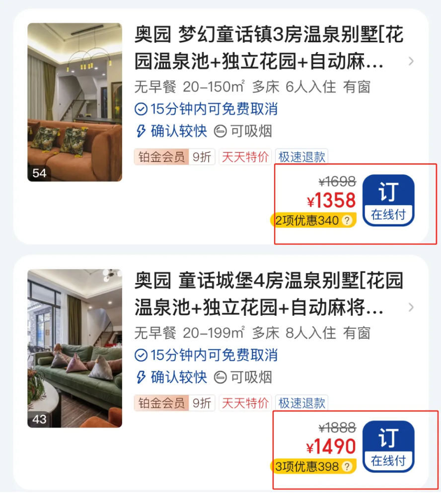 可选升级4房5-6床别墅,需加收100元,周六加收420元,先抢购常规388元套餐,预约时补差价升级