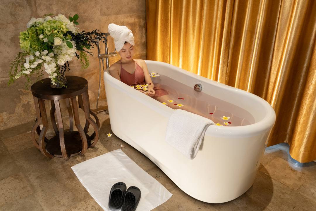 还可以自带花花和各种养生浴包,享受香薰浴