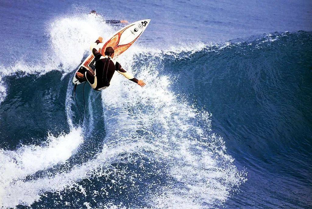涨潮时,层层鱼纹型长浪汹涌扑岸