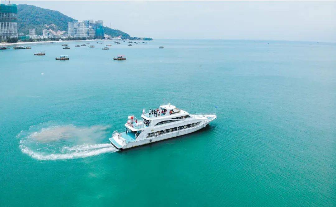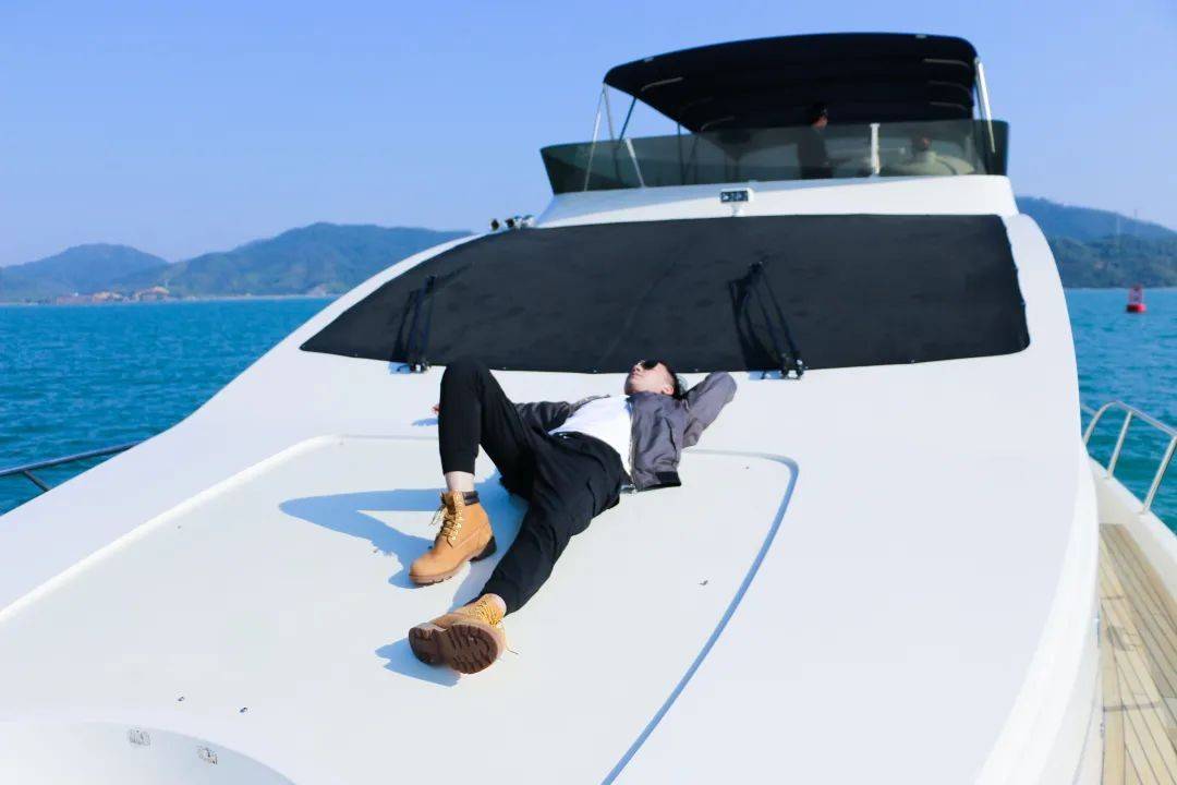 休闲安逸的豪华游艇观光,甲板、墨镜。比基尼,度假打卡必备选项。船上有不止有免费KTV,还有不定时节目表演