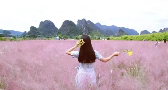 “一抹嫣粉灿若霞,风吹乱子舞青纱”