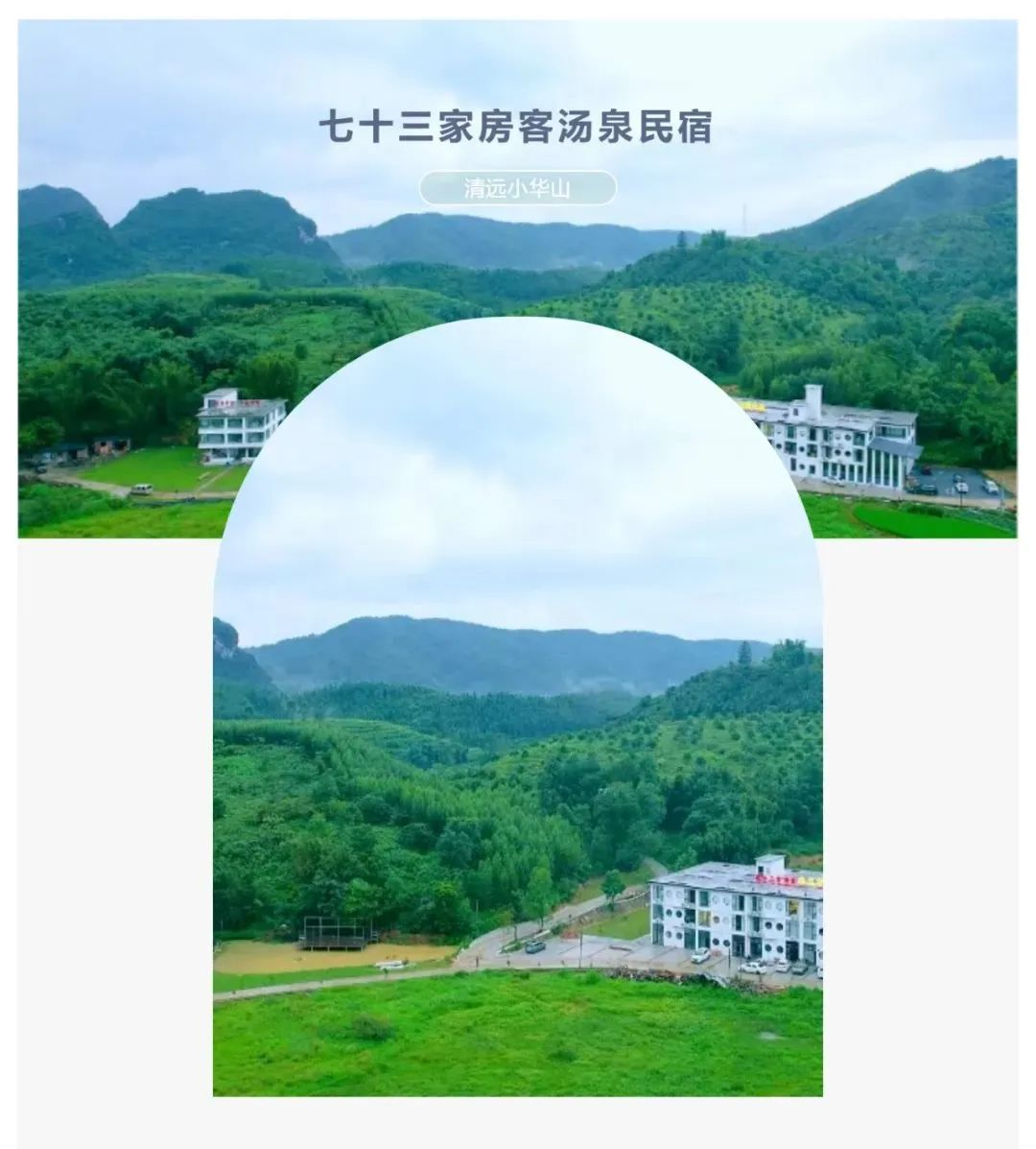 ◆酒店简介:七十三家房客坐落于清远美丽的清新区小华山汤泉度假区旁边,以田园风光,喀斯特地貌为背景的汤泉民宿,民宿设有独立汤泉池各类风格客房,多功能会议厅,休闲舒适公共温矿泉,温矿盐疗馆,特色能量房,陨石干蒸湿蒸,温矿美肤石床,儿童娱乐天地,并设有免费口腔护理、美齿服务;民宿有中医理疗,艾灸,针灸,经络推拿健康项目,可举行大型室外篝火晚会,各类轰趴,公司团建,家庭亲子,休闲度假高端旅游的综合体