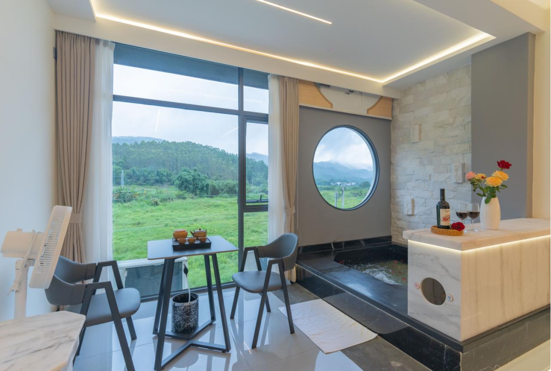 【清远·小华山X七十三家房客汤泉】赠送小华山登山门票!私家温泉看日落、中草药薰蒸、SPA干湿蒸多重冬日滋补享受!峰景浪漫网红民宿~399元抢豪华汤泉大床或双床房+私家泡池无限次水+温矿泉按摩泳池+干湿