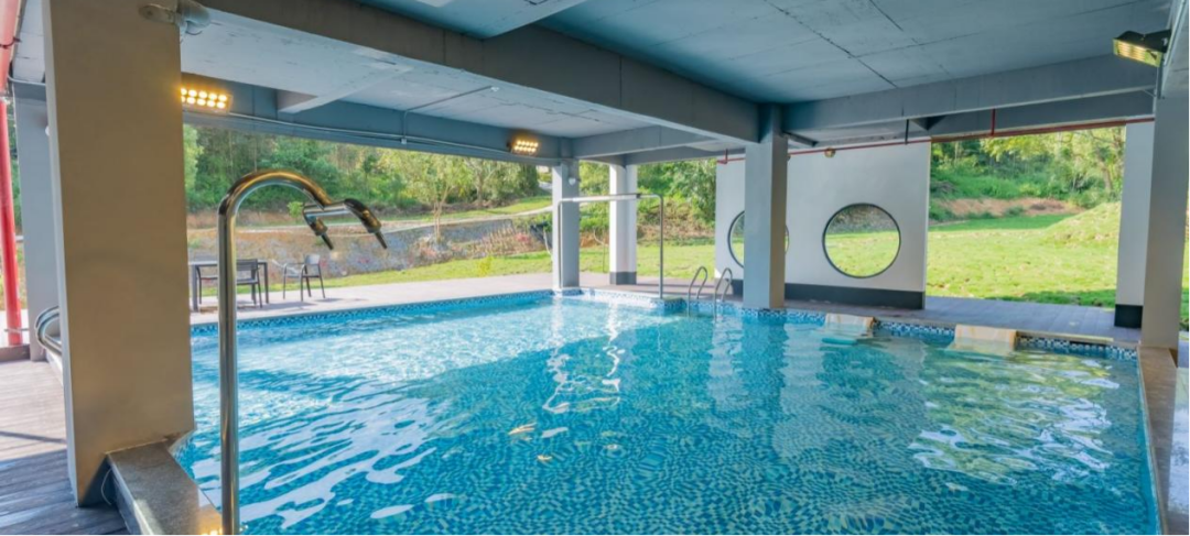 ◆酒店泳池为山水泳池,泳池旁配有干湿蒸+盐浴顾客可无限次享用,设有:湿蒸房、儿童嬉戏乐园、冰泉池、按摩池、理疗温床等等