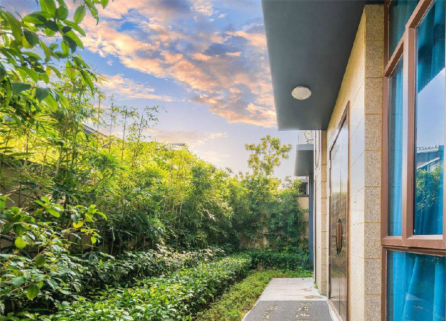 酒店坐落在山里,翠林如海