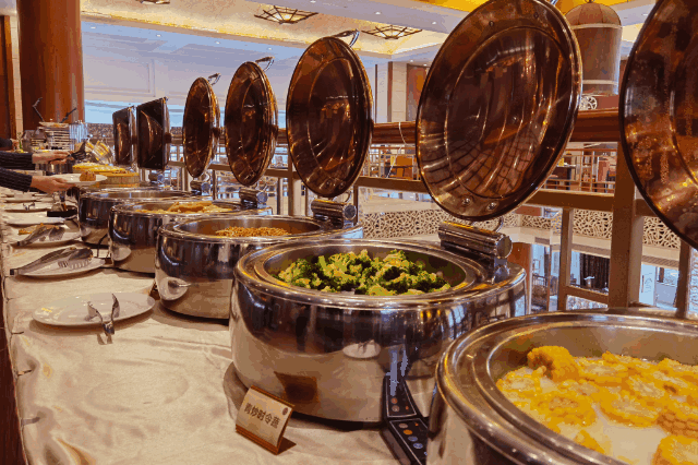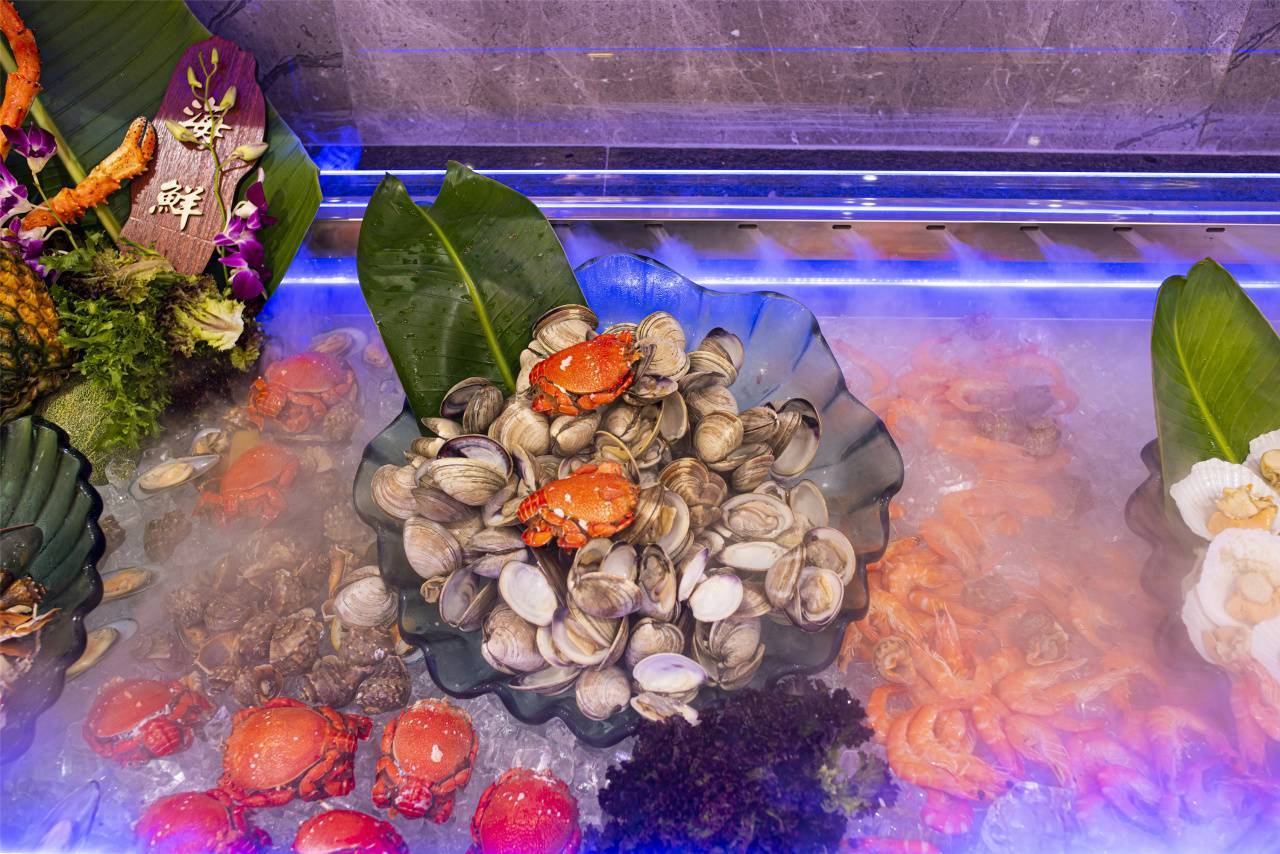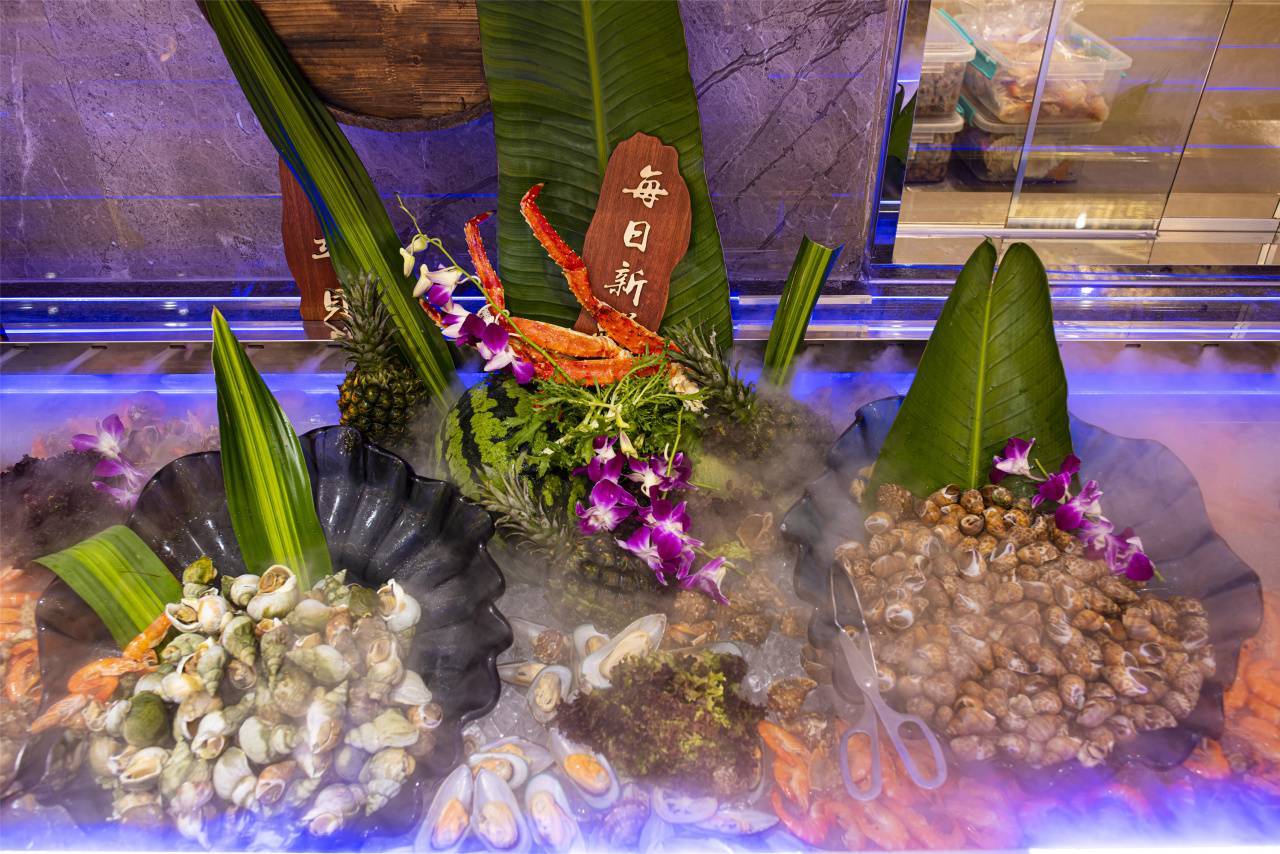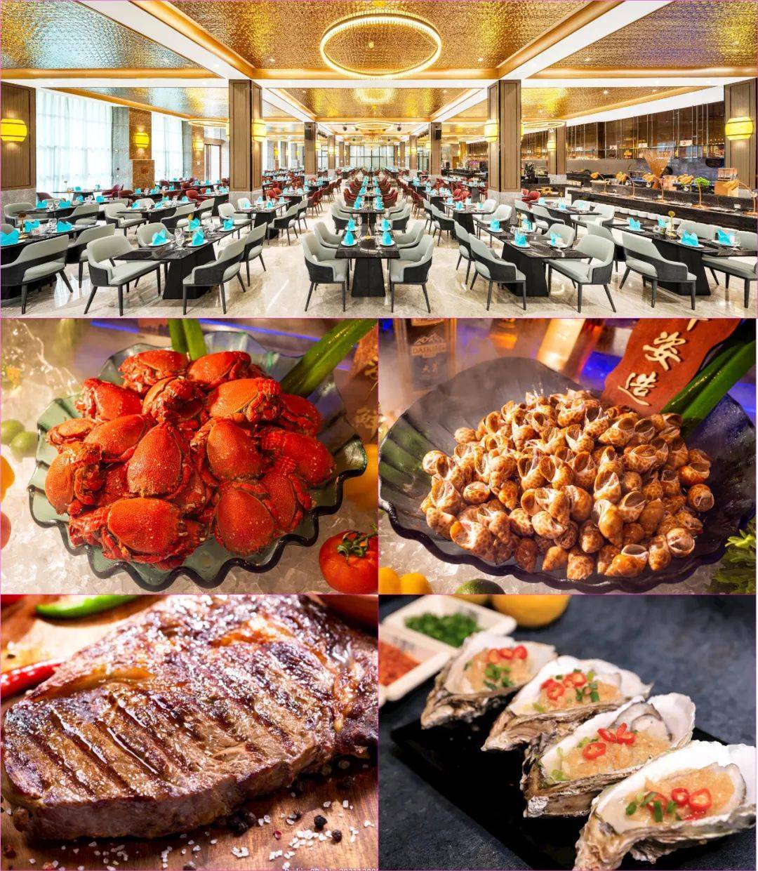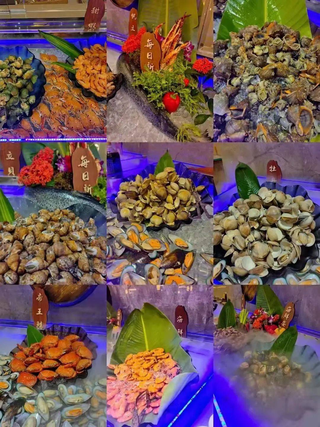 各式肥美海鲜、刺身寿司、扒类热菜、水果甜品...