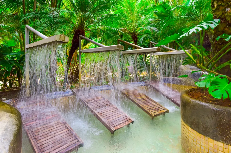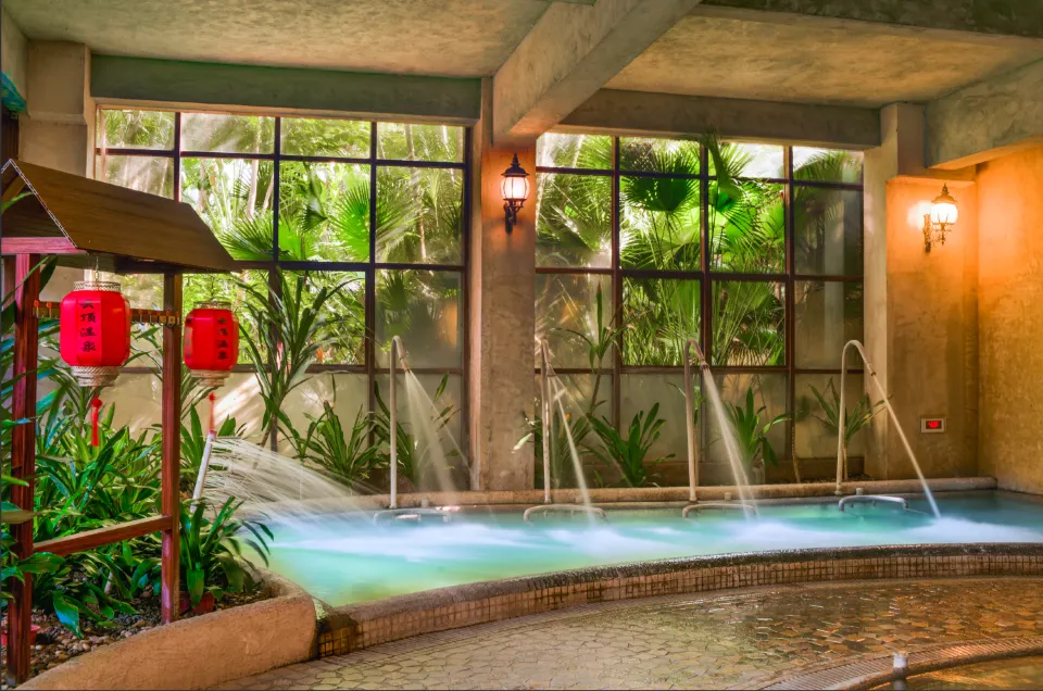 以72℃纯天然硅酸氟温泉"美人汤"为特色