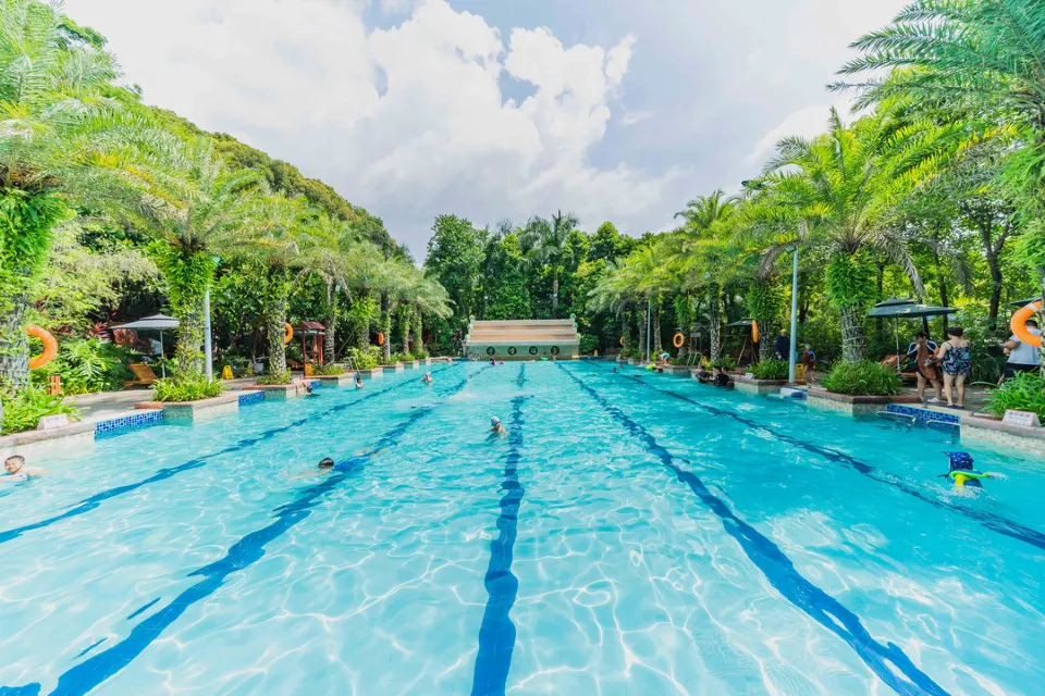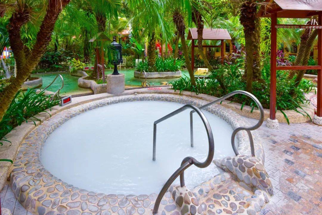 温泉区分为室内外水疗区、露天特色温泉区、露天水上乐园区、园林果岭私密汤池区等区域