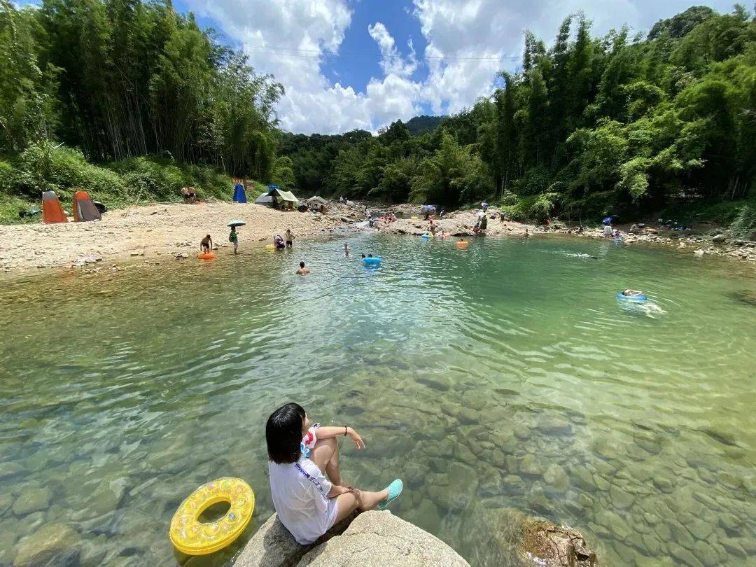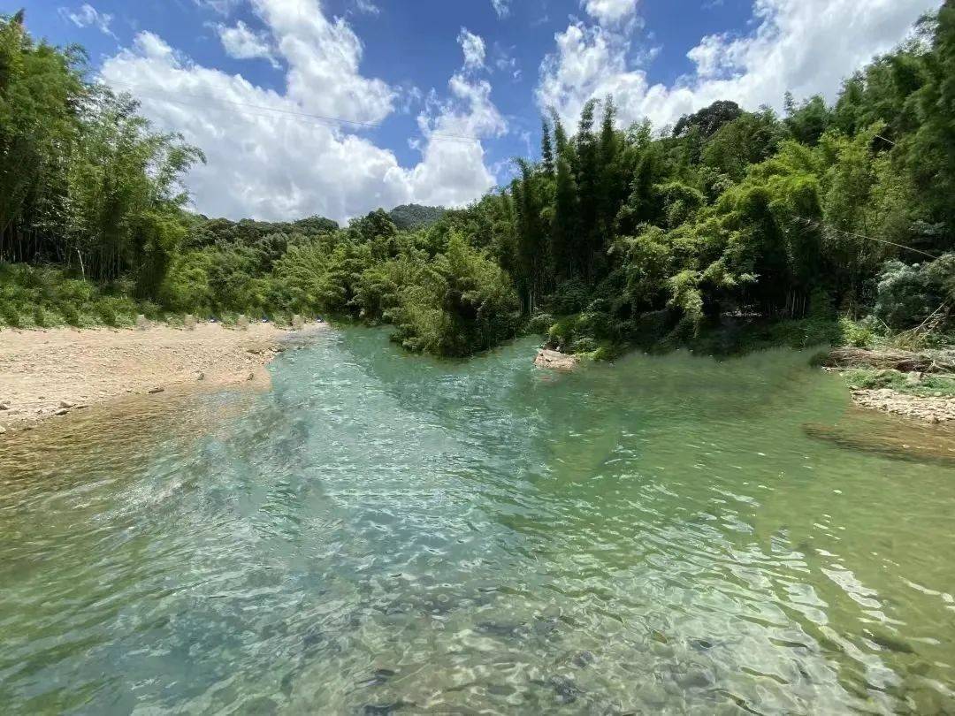清澈见底的溪水,像一条翠玉在竹海中穿过
