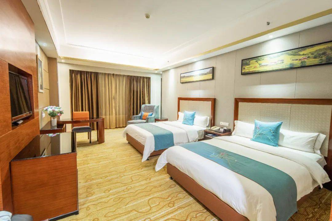 【河源·荣佳国韵温泉酒店】全年通用!平日周末不加收!无套路~不限次泡园林温泉泡池!¥368元抢豪华双床房1间1晚+2大1小营养早餐+无限次温泉+夏天水上乐园畅玩+免费使用篮球场、羽毛球场!