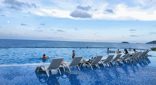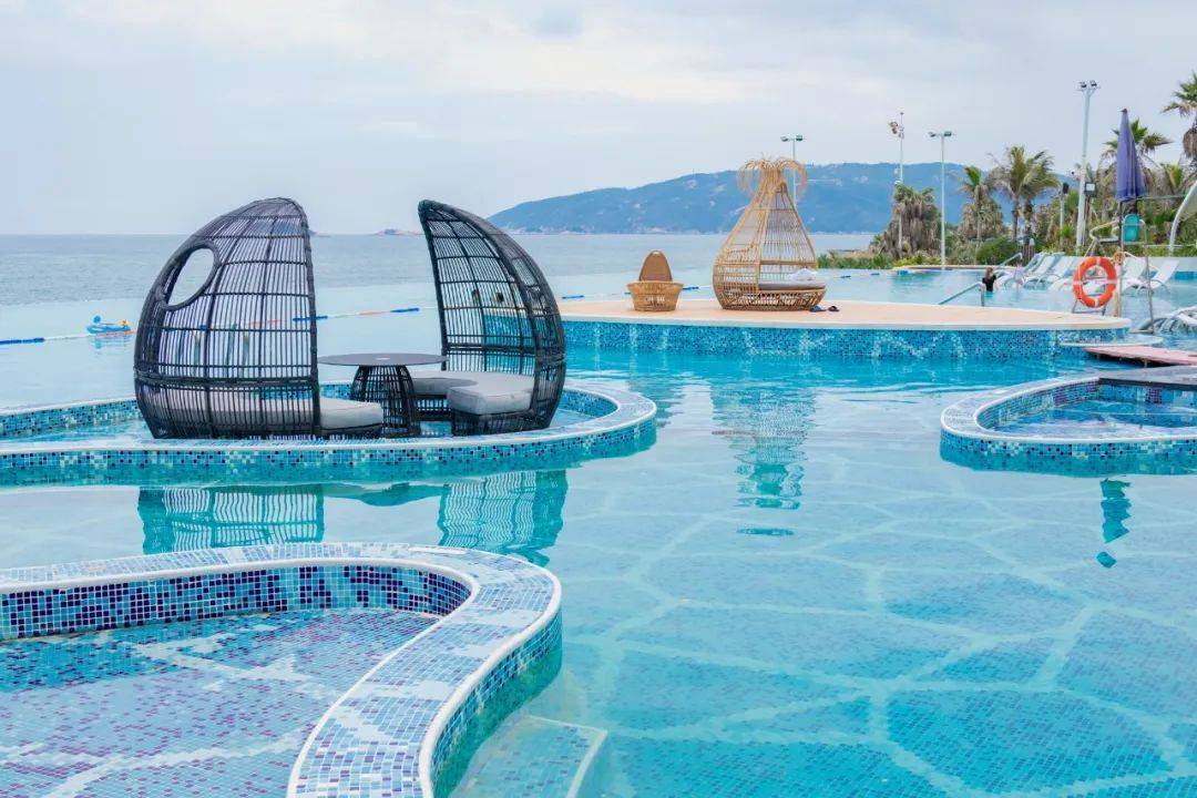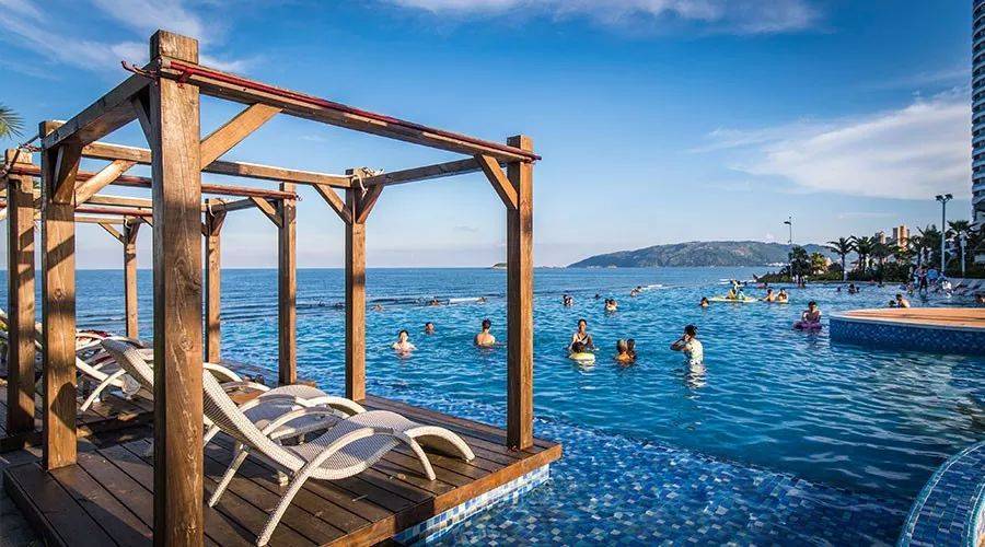 无边际泳池配沙滩每一眼都是海天泳池连成一线的大片躺在泳池边的沙滩上,像是躺进了海里随时想游就游注:海泉冬季开放