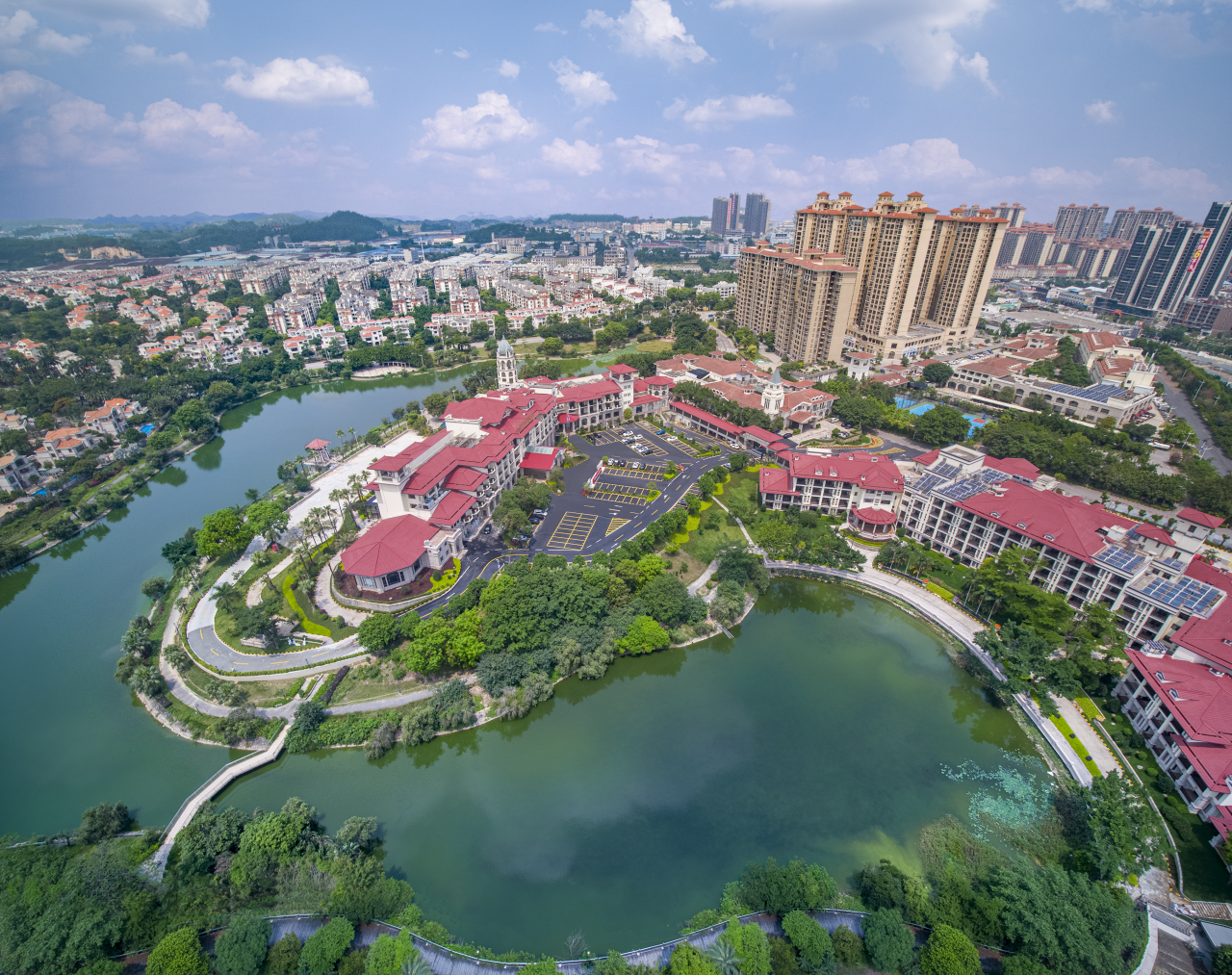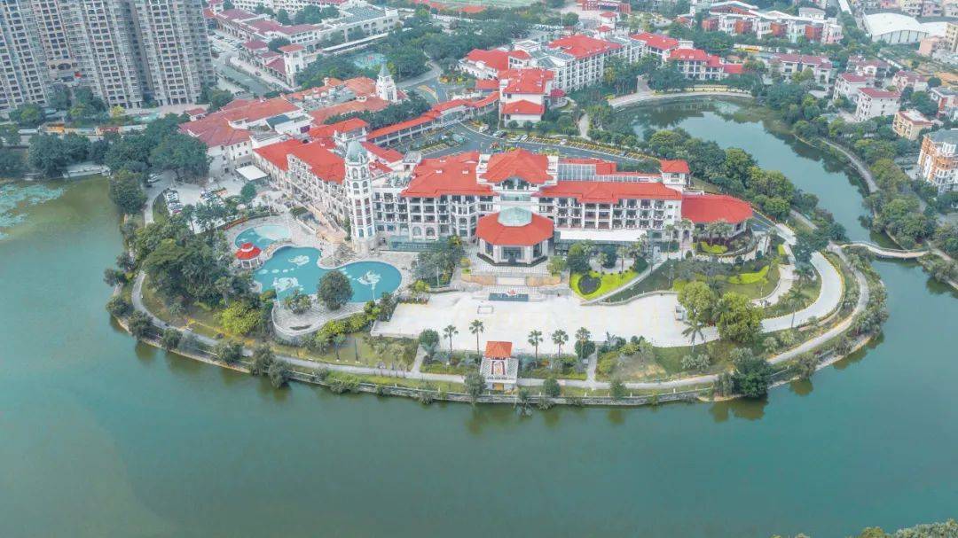 鹤山东古玥湖酒店坐落于优美的玥湖岛之上
