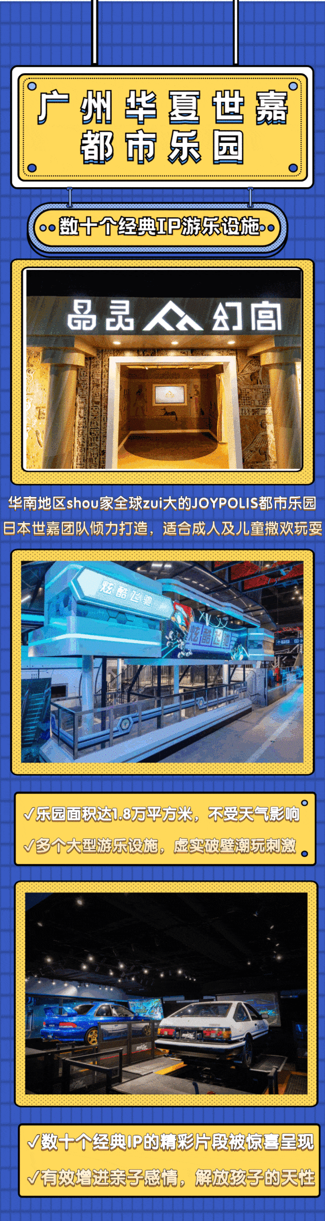 世嘉乐园项目可畅玩:JOYPOLIS 城堡特工,炫酷飞驰,狂野系列,忍者系列,TOWERTAG电竞、VR探险、病院遗魂、鬼屋:动感影厅、索尼克田径总动员、晶灵幻宫、索尼克明星赛车、世嘉头文字D····详情可参考下图