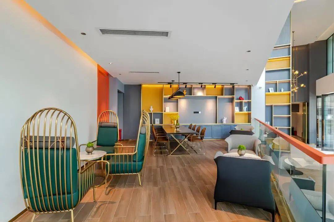一出电梯您就能看到专属的标志赛车绿、高级灰、贵族橘