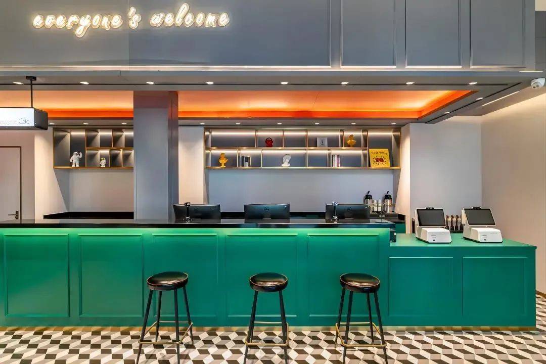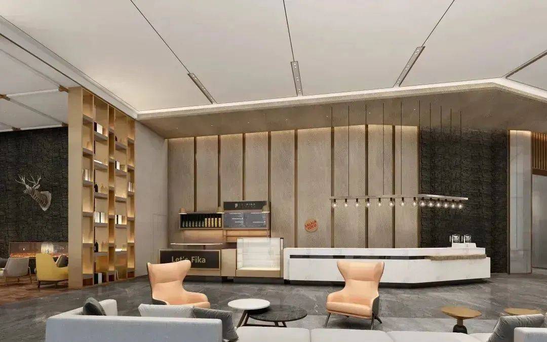一楼设有咖啡吧、机器人送物服务
