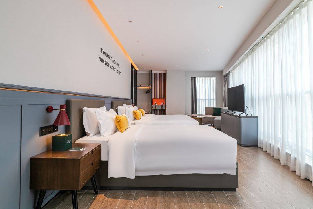 步入其中,感受满满的轻奢质感酒店每一个角落都能,透露着设计师的巧思住进去干净舒适,有一种回家的温馨