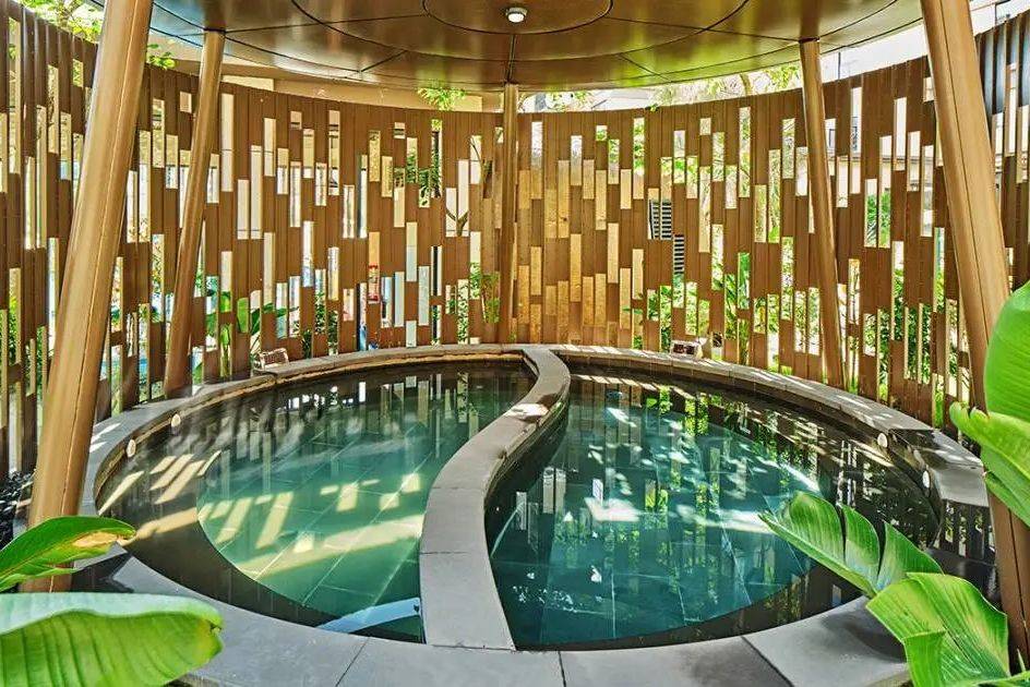 药浴养生区结合传统中医理念,打造出多种功效的温泉池,
