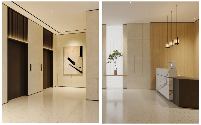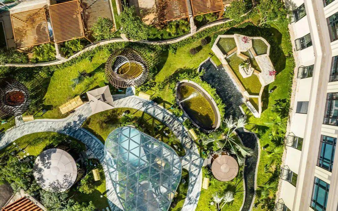 草坪广场坐拥苍翠山色,秀美水景,自然广阔。